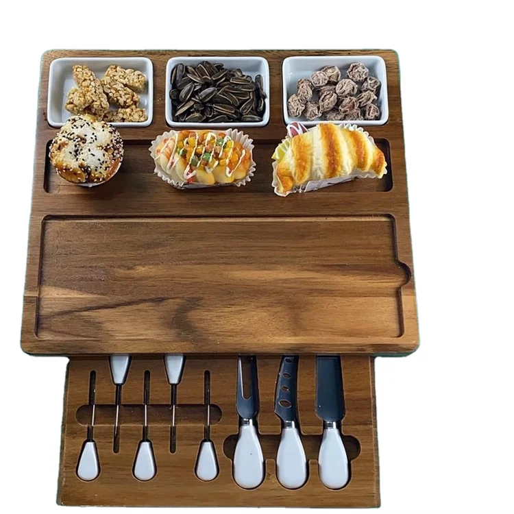 Spa Serving Platter Acacia Wood Cheese Board Trays with Slide-Out Drawer