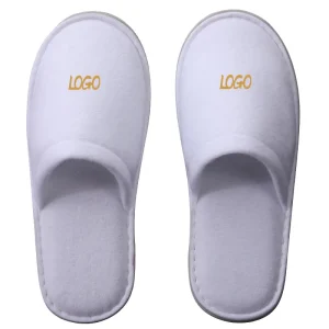 Custom Hotel Amenities Simple Design Luxury Cotton Velour Open Close Toe Disposable Spa Slippers with Logo