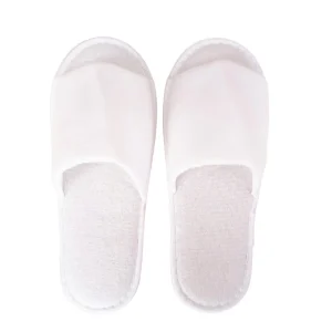 Custom Hotel Amenities Simple Design Home Hotel Room Luxury Cotton Velour Open Close Toe Disposable Spa Slippers with Logo