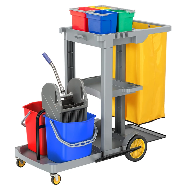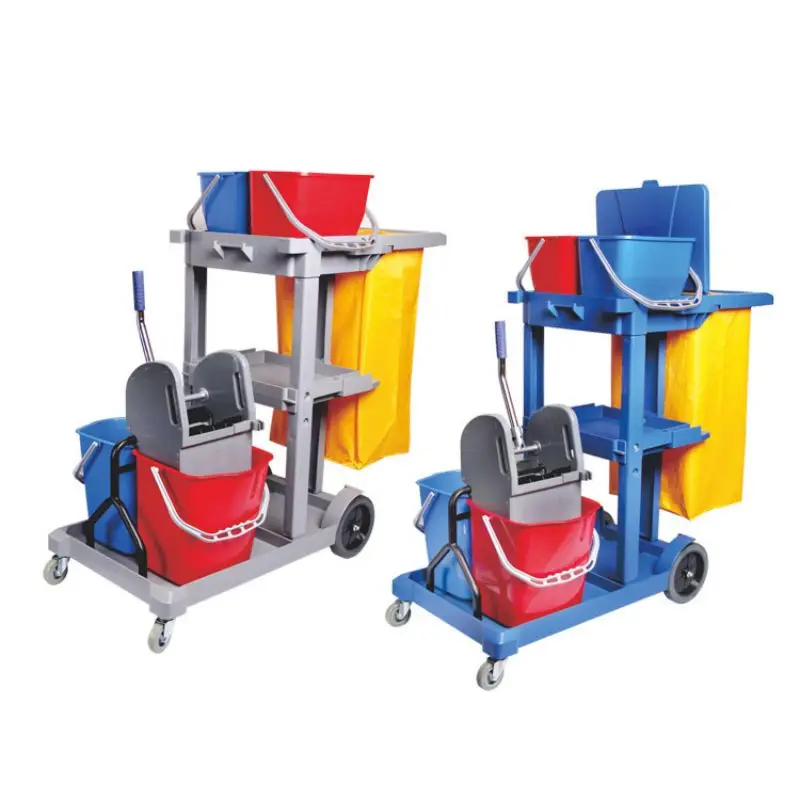Custom Size Price Plastic Multi Function Linen Cleaning Janitorial Cart Hotel Room Service Trolley Supplies