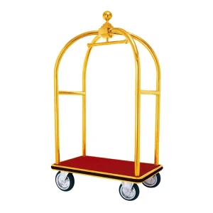 Factory Price Stainless Steel Bellman Hotel Lobby Golden Service Luggage Trolley Baggage Cart