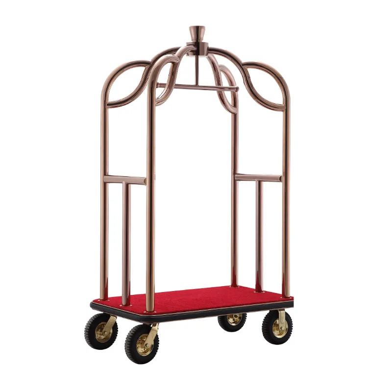 Stainless Steel Luxury Bellboy Serving Cart Rack Concierge Barrow Baggage Bellman Hotel Birdcage Trolley Luggage Carts