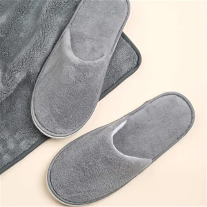 Custom Eco-friendly Hotel Amenities Design Luxury Cotton Velour Open Close Toe Disposable Spa Hotel Room Slippers with Logo