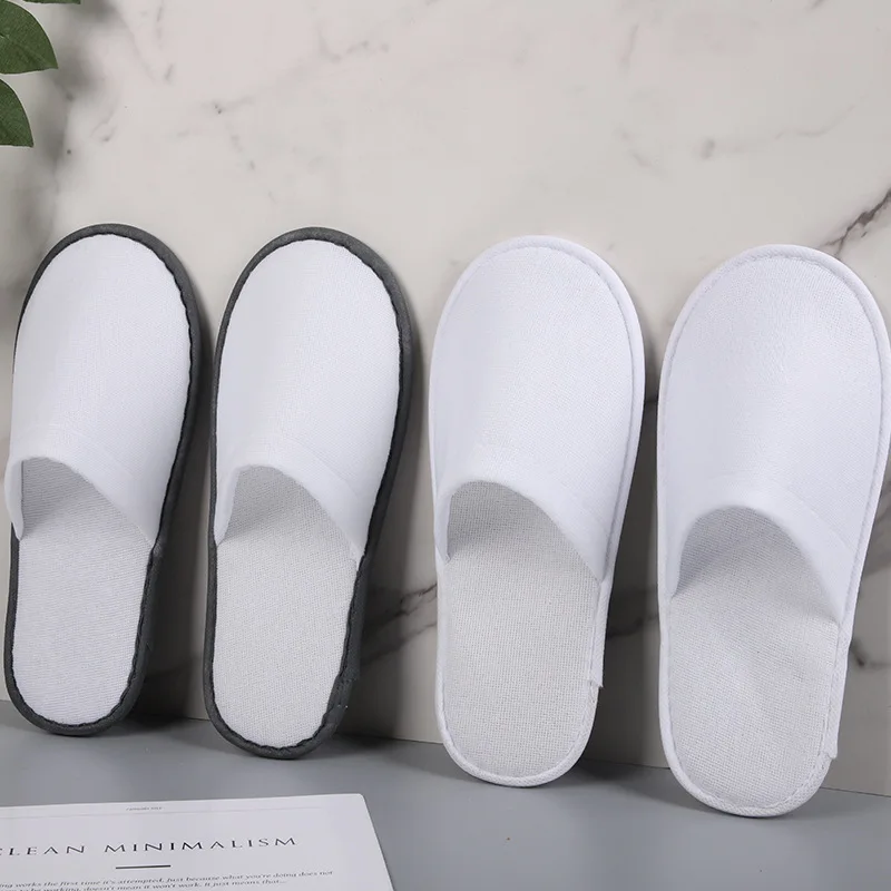 Custom Hotel Amenities Simple Design Home Luxury Cotton Velour Open Close Toe Disposable Spa Hotel Room Slippers with Logo